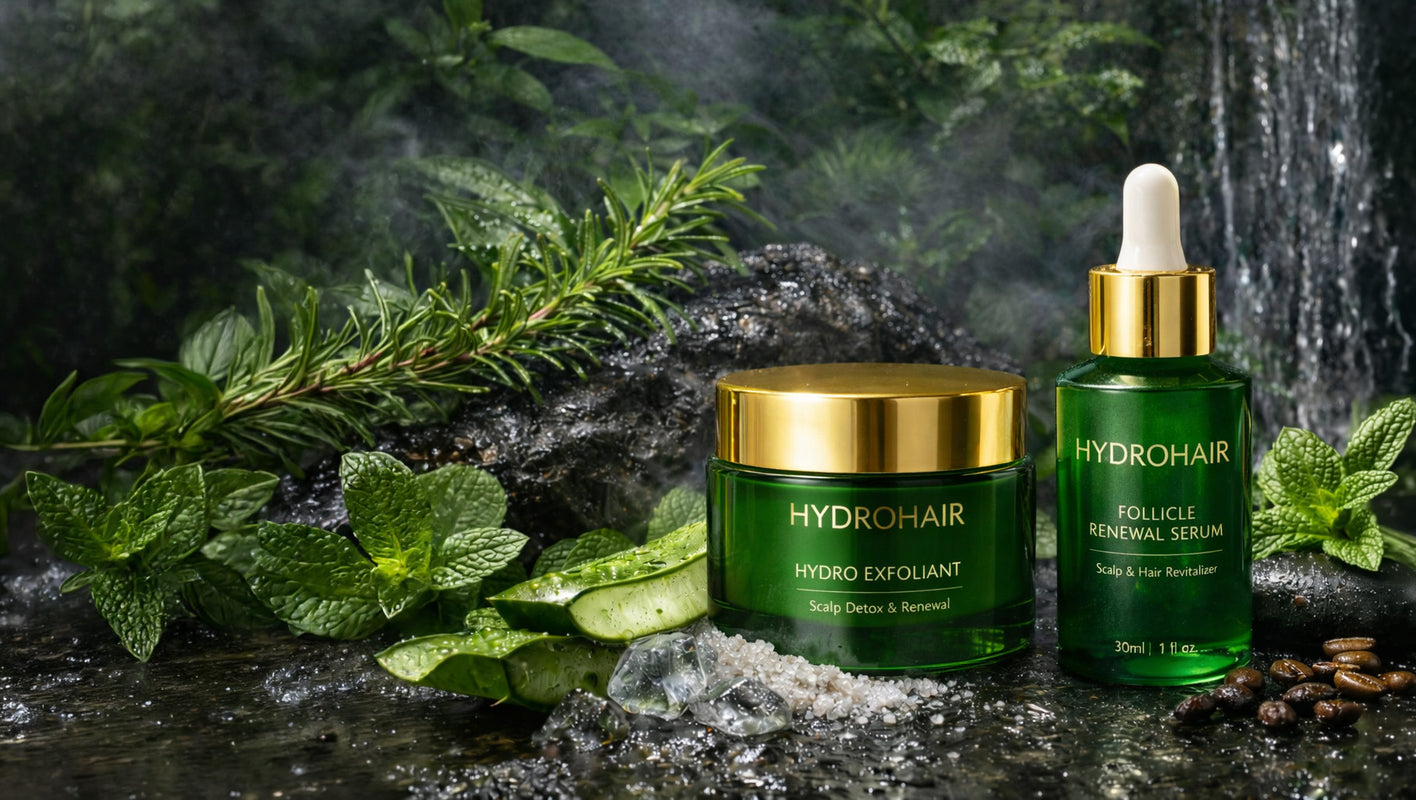The HydroHair Nano Rejuvenation System™ is an advanced scalp and follicle regeneration treatment designed to restore the foundation of healthy hair through a powerful fusion of botanical science and nano-delivery technology.